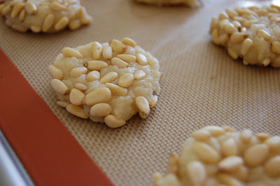 These cookies came to be made because Greer bought some at an Italian market and totally loved them. She found a recipe and we got to work. They are very simple. You mix almond paste with sugar and egg whites and roll in the nuts- voila!